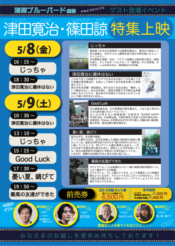 津田寛治さん、篠田諒さんの舞台挨拶があります。